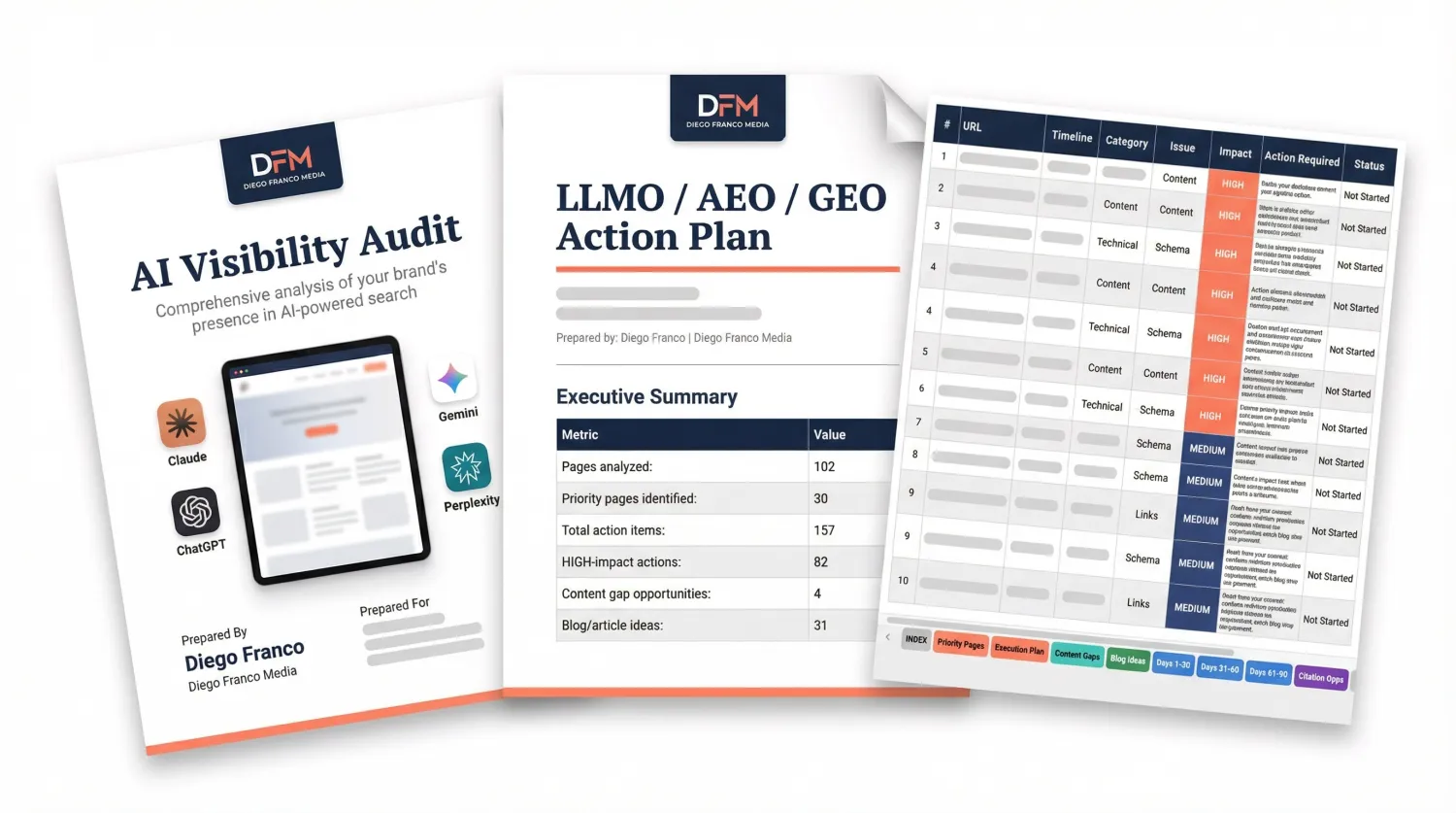 This is not a high-level summary or an automated snapshot. It is a deep, forensic analysis of your brand's entire AI footprint, combined with a step-by-step execution plan to make these engines recommend you. Every Blueprint is personally reviewed and approved by our team before it reaches you.
